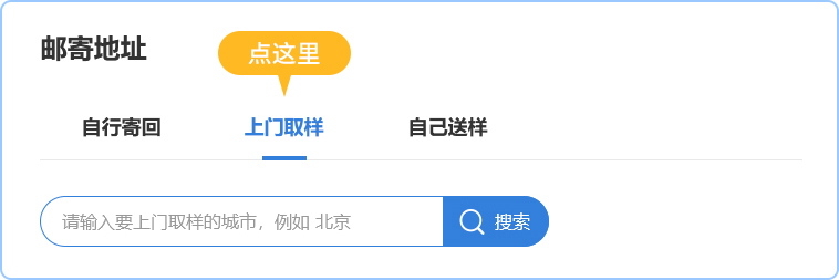 如果您需要上門取樣服務,眾科檢測平臺下單時,請選擇上門取樣服務并輸入上門取樣的城市即可,上門取樣人員會與您聯系,無需快遞,其他市縣需要郵寄。
